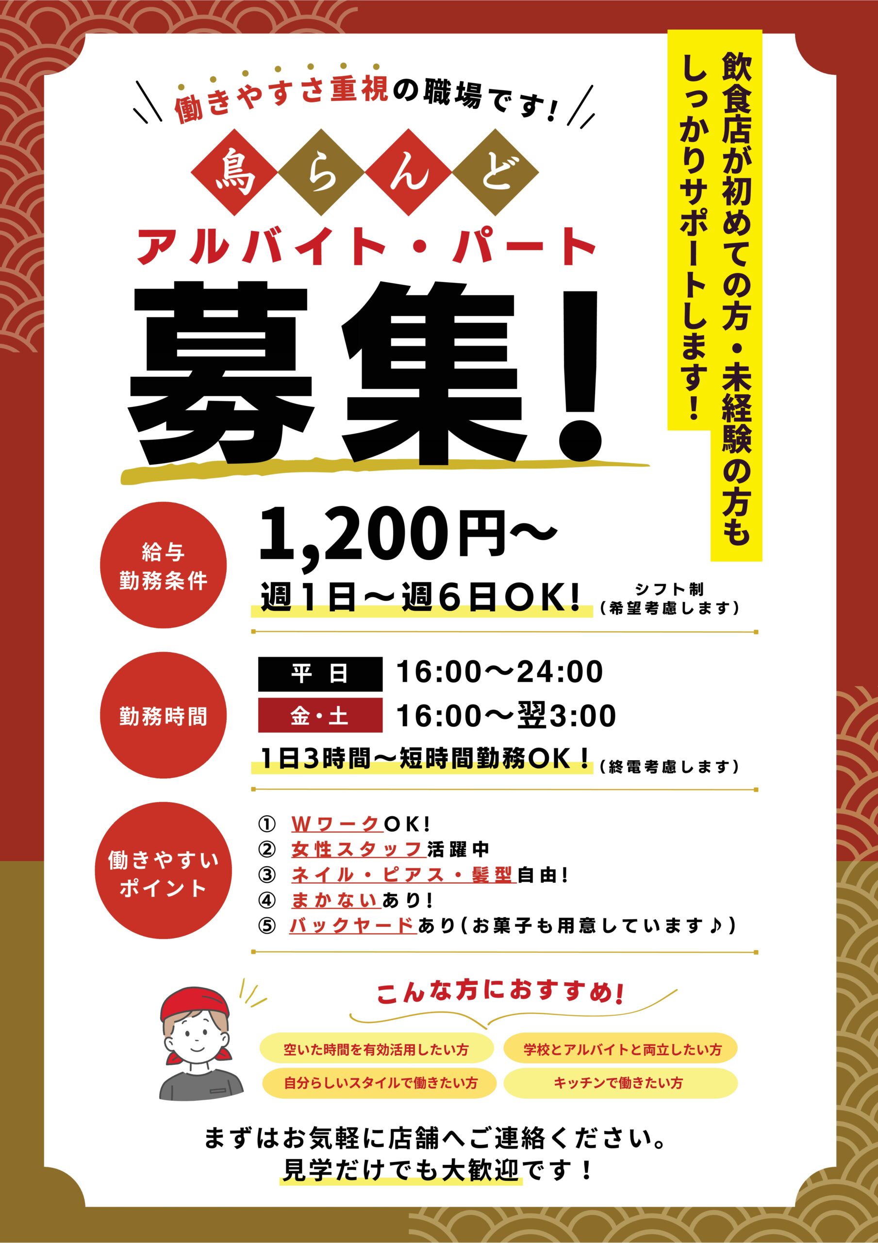 飲食店未経験の方でもしっかりサポートいたします!